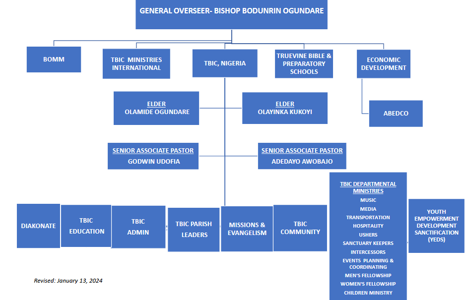 Welcome to the TBIC (The Believer’s International Parish) Vision Organization Chart where we outline our structure and commitment to fulfilling our divine mission.